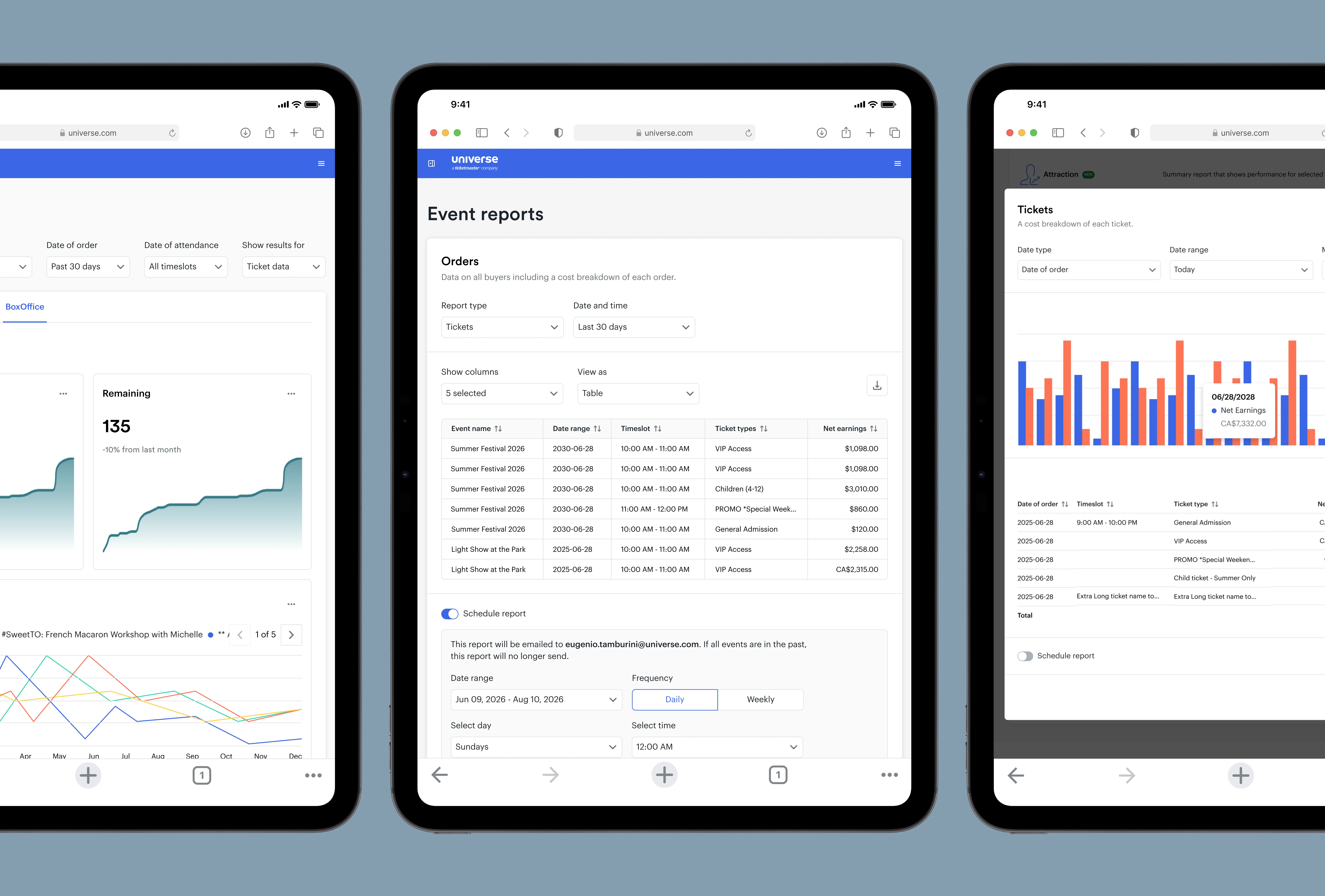I led the redesign of Universe's reporting offering by turning years of research, user feedback and platform complexity into a singular vision. The goal was to unlock the essential reporting tools our enterprise users needed to operate large events, while sunsetting legacy workflows that were expensive to scale and caused performance issues.