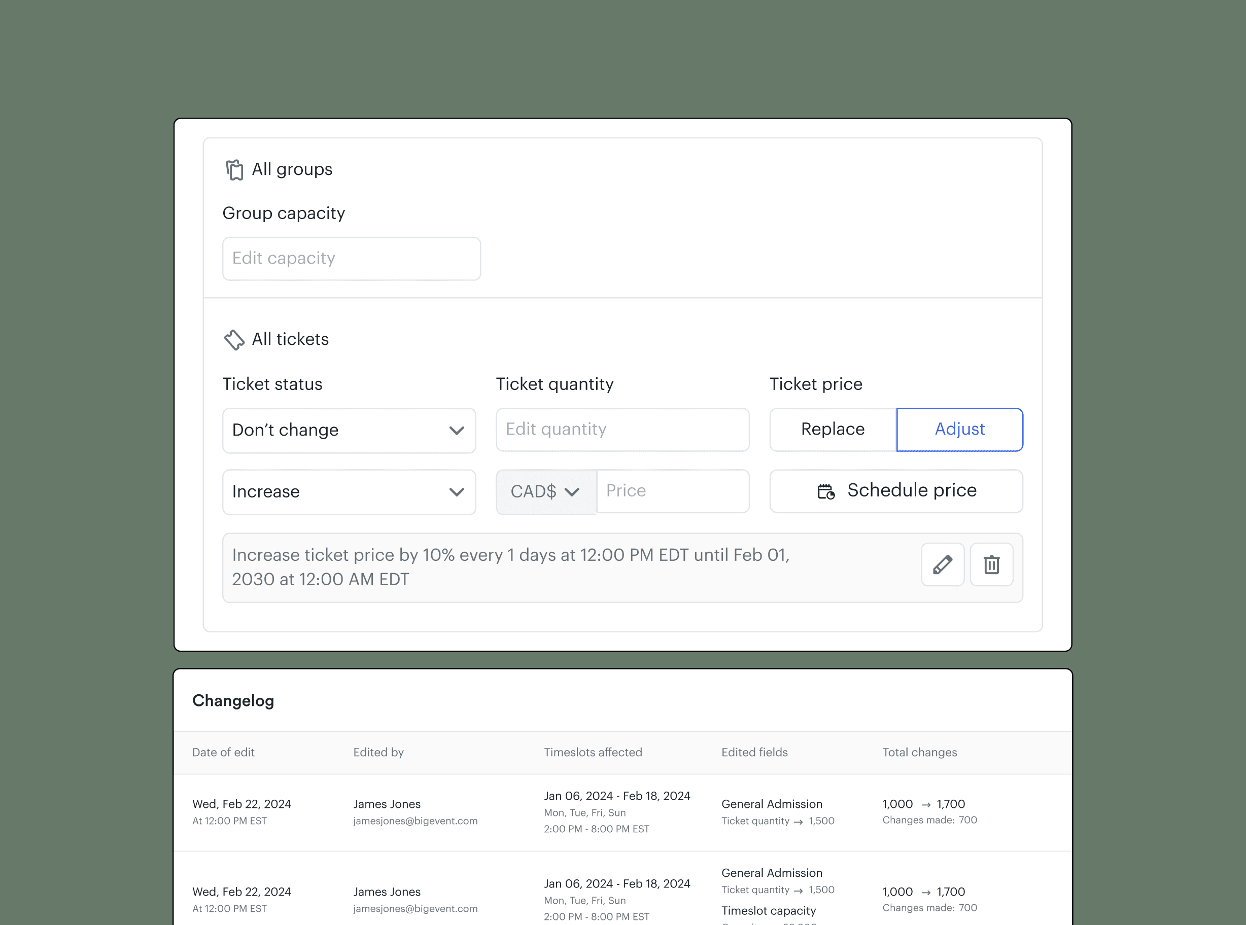Organizers had to update every ticket and time slot one by one, turning large events into hours of error-prone manual work and creating operational strain, delays, and churn risk as event complexity grew.